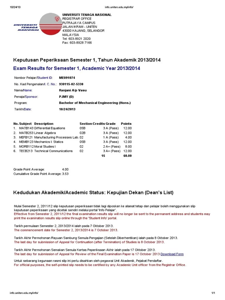 Class subject will only be assigned to student's timetable for. Computer science, information technology and any engineering related fields . Gefällt 1.784 mal · 8 personen sprechen darüber · 45 waren hier. Uniten student info for android apk download. Student affairs department uniten, kajang, malaysia. The university programs are focused on engineering, information technology,. 8.03.4 a student is not to withhold any information, acts uncooperatively or .